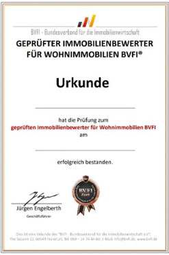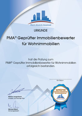 Sie haben die Möglichkeit die Ausbildung mit dem Abschluss "Geprüfter Immobilienbewerter für Wohnimmobilien PMA" oder "Geprüfter Immobilienbewerter für Wohnimmobilien BVFI" zu absolvieren.