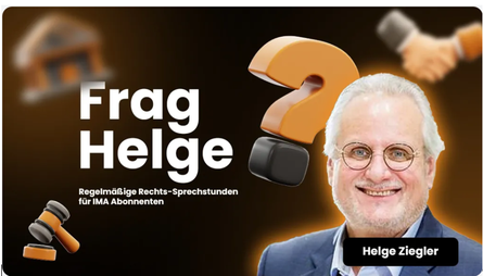 Senden Sie einfach Ihre Fragen vorab an recht@immobilien-makler-akademie.com. Auf Wunsch werden Ihre Fragen anonymisiert beantwortet. Beachten Sie, dass alle Fragen chronologisch abgearbeitet werden. Also Fragen welche zuerst eingesendet werden, werden im Termin auch zuerst behandelt.